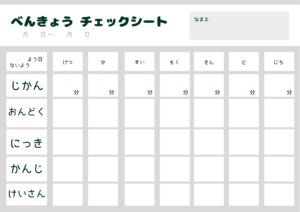 毎日の勉強チェックができるシートです。