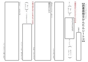 基本の流れを意識して記入できる【読書感想文】のプリントです。
