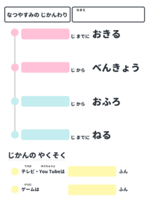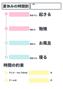 夏・冬休みの生活リズムを崩さないための時間割です。
