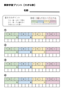 10 大きな数記入シート